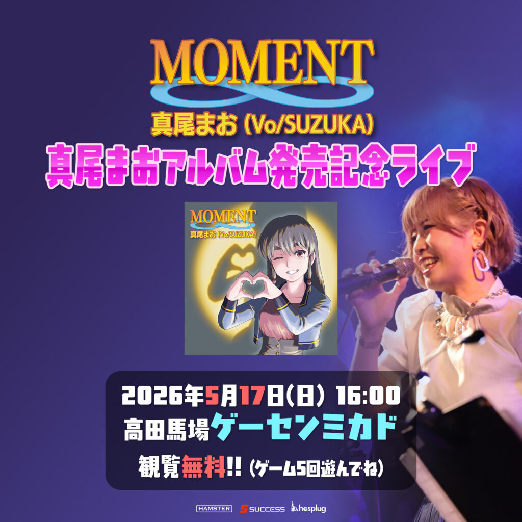令和の真尾まおことボーカリストSUZUKAの最新アルバム「MOMENT∞」を引っさげて、ゲームセンターの聖地・高田馬場ゲーセンミカドでインストアライブを開催!CD即売会・サイン会もあります。